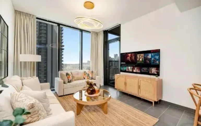 This well-designed 2-bedroom apartment offers a contemporary layout that maximizes space and comfort. The open-plan living and dining area connects to a stylish kitchen finished with high-quality materials, while both bedrooms provide privacy, built-in wardrobes, and generous proportions. Large windows allow natural light to flow through the interiors, creating a bright and inviting atmosphere.