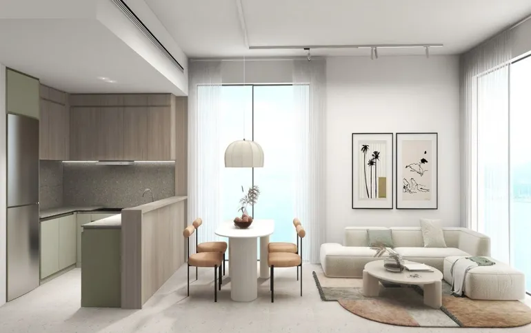 Discover serene waterfront living with this elegant 1-bedroom apartment in Bayviews, located within the vibrant Mina Al Arab community in Ras Al Khaimah. The apartment offers a well-designed layout with a bright living and dining area, complemented by large windows that bring in natural light and showcase relaxing views of the sea and surrounding greenery.