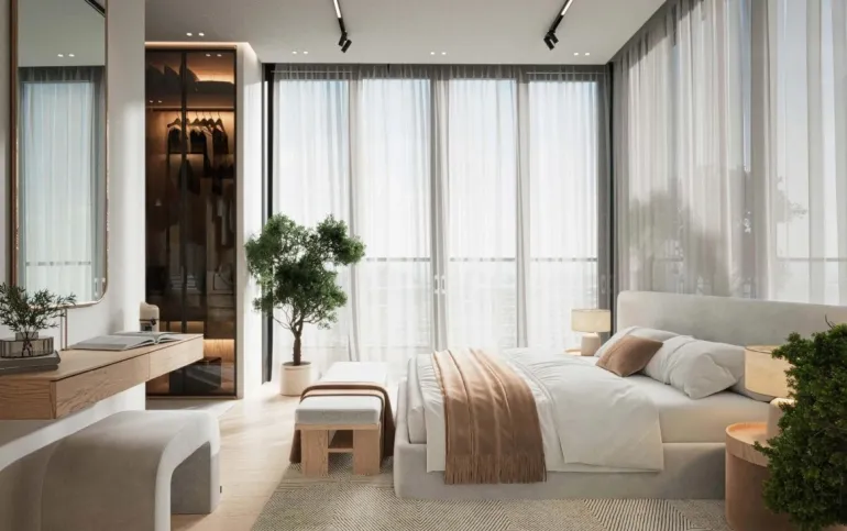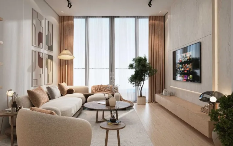 This stylish 2-bedroom apartment in Azure By Lapis, RAK Central, offers a perfect blend of comfort and contemporary living. The apartment features a well-planned layout with spacious living and dining areas, modern finishes, and large windows that provide natural light and pleasant views of the surrounding area.