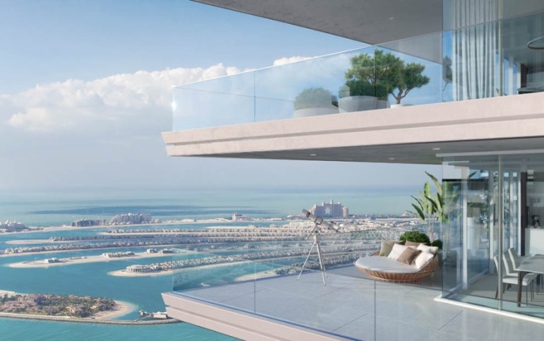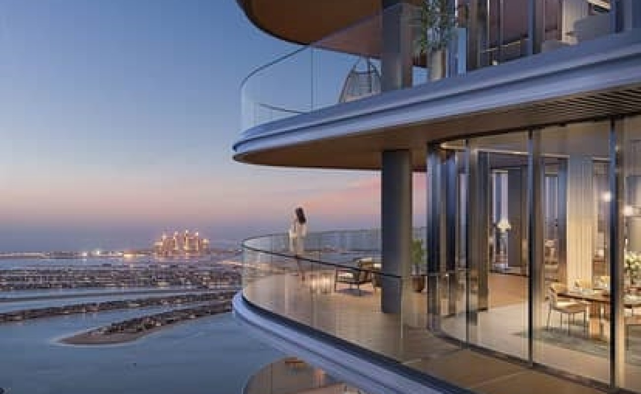 The residence offers spacious interiors, premium finishes, and floor-to-ceiling windows that open up to panoramic views of the Arabian Gulf, Dubai Marina, and Palm Jumeirah.